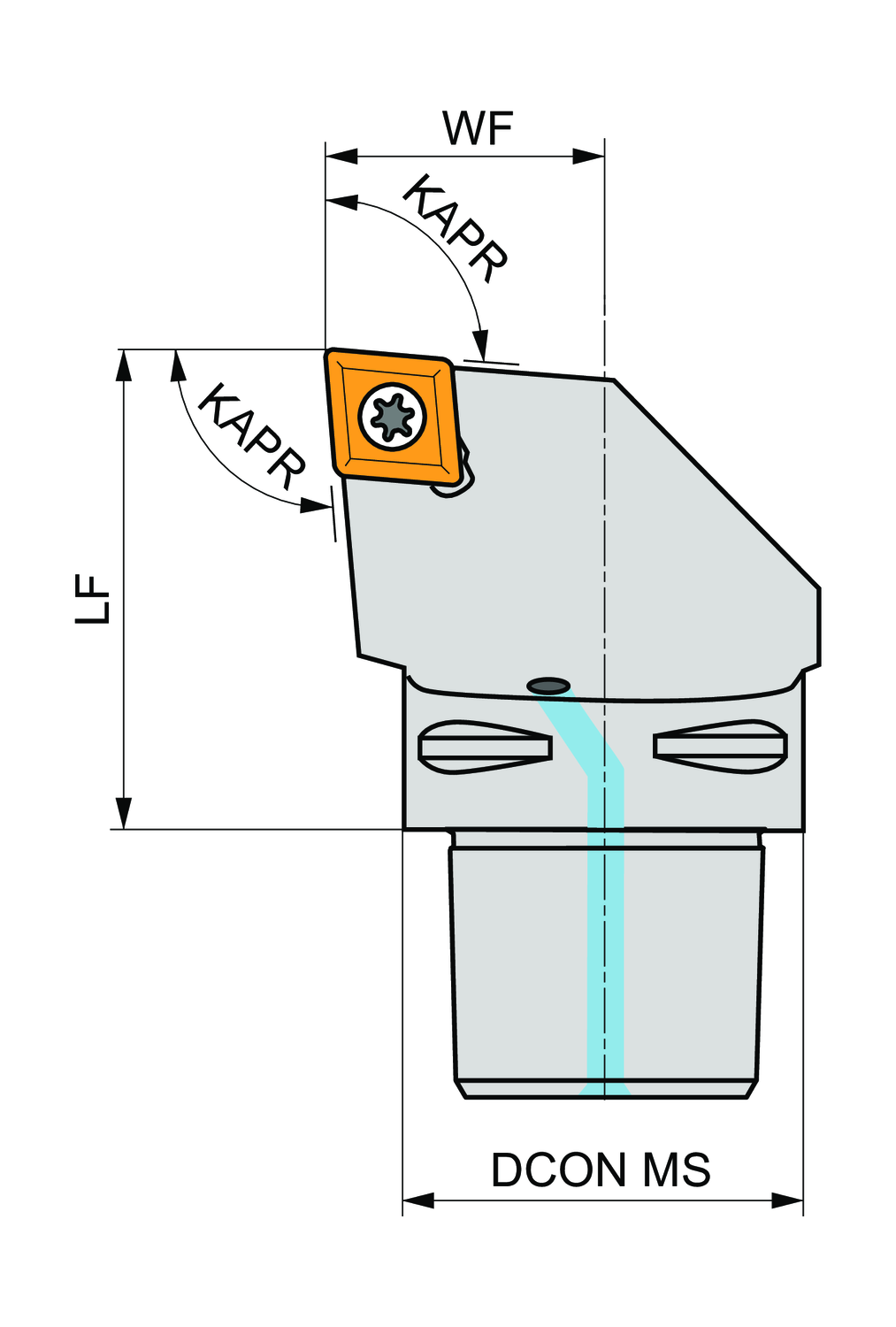 Screw clamp turning tool for holding a 80° rhombus positive insert with an inscribed circle diameter of 9.525mm, 3.97mm thick (ISO designation CC.. 09T3.. ), left hand 95° side and end cutting with off-set shank according to ISO 26623 (Polygon Shank Coupling) size C3, with 22mm funtional width and 40mm protruding length for chamfering, taper turning, face turning with and without shoulder and longitudinal turning with and without shoulder