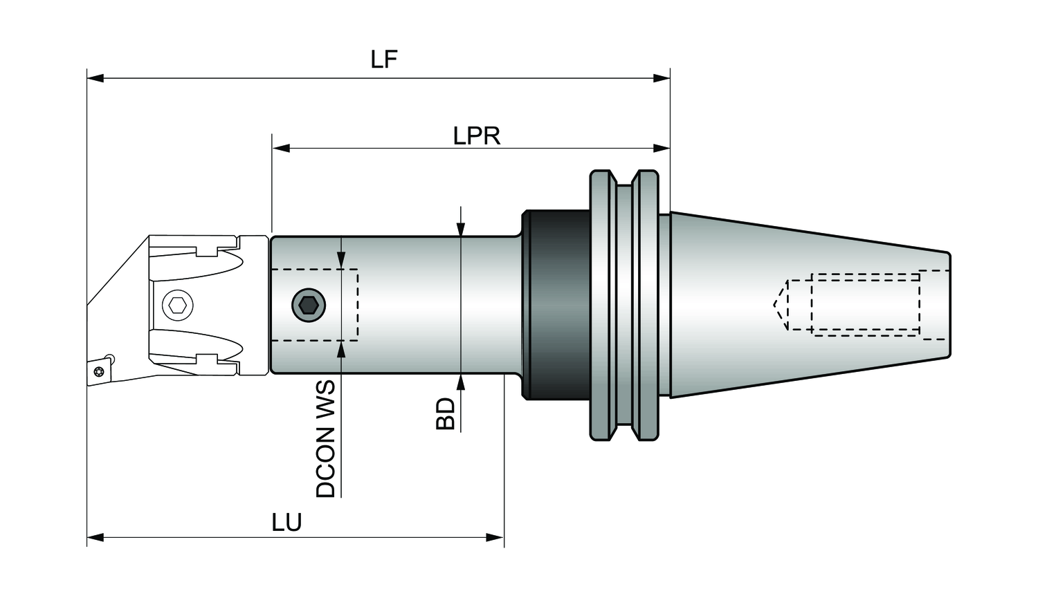 Tool shank for modular boring system size 42 with BT 40 taper shank according to JIS B 6339, through coolant feed and 160 protrusion length (including the boring head )