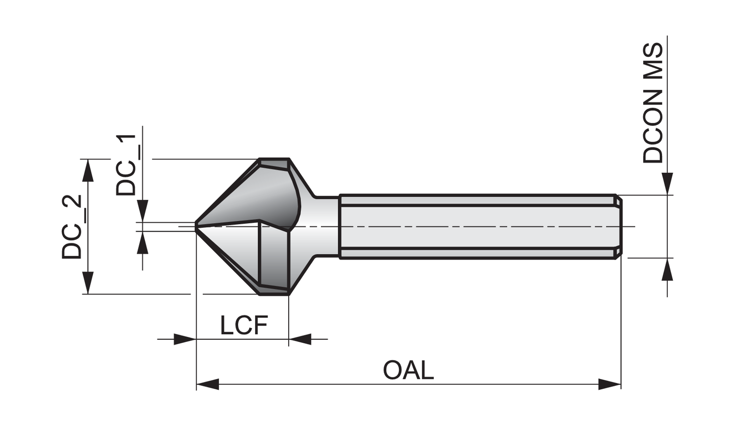 Dormer G50612.4 7147796 Countersink with Tri-Flat shank - 90° 3FL 12.40 mm