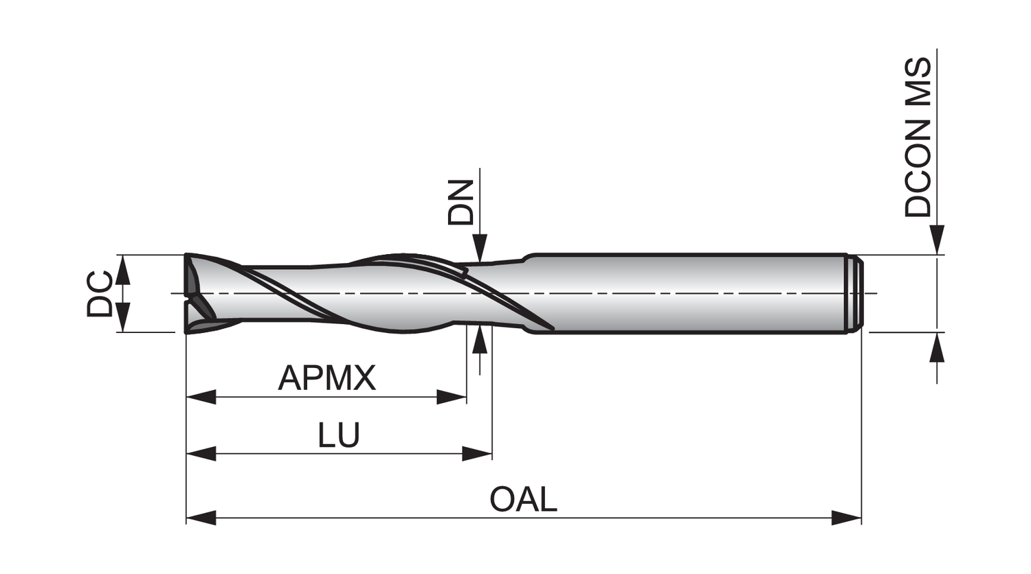 C122 2 flute milling cutters are very versatile and can be used for plunging, ramping and profile milling in stainless steels, steels and cast iron and the 2 flute design gives high rigidity, making the tools great for milling standard slots.