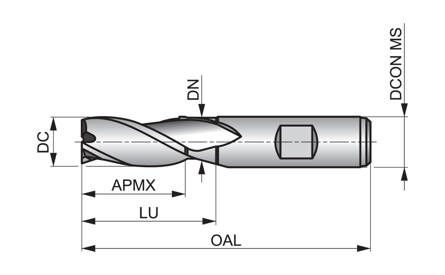 C352 milling cutters have 3 flutes with a medium length flute design, giving high rigidity for milling standard slots.