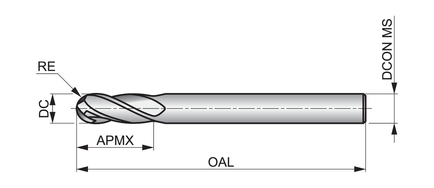 S146 4-flute ball nose milling cutters have a bright finish to stop workpiece material from sticking to the cutting edges of the tool, so you get a clean and accurate result