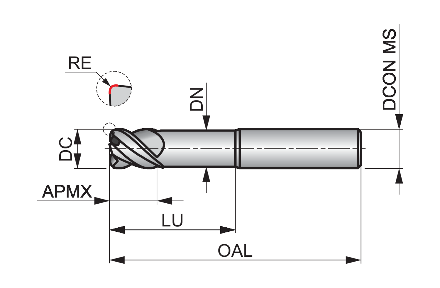 Dormer S5215.0XR0.3 6706673 Corner Radius End Mill 5.00 mm x 0.3 mm