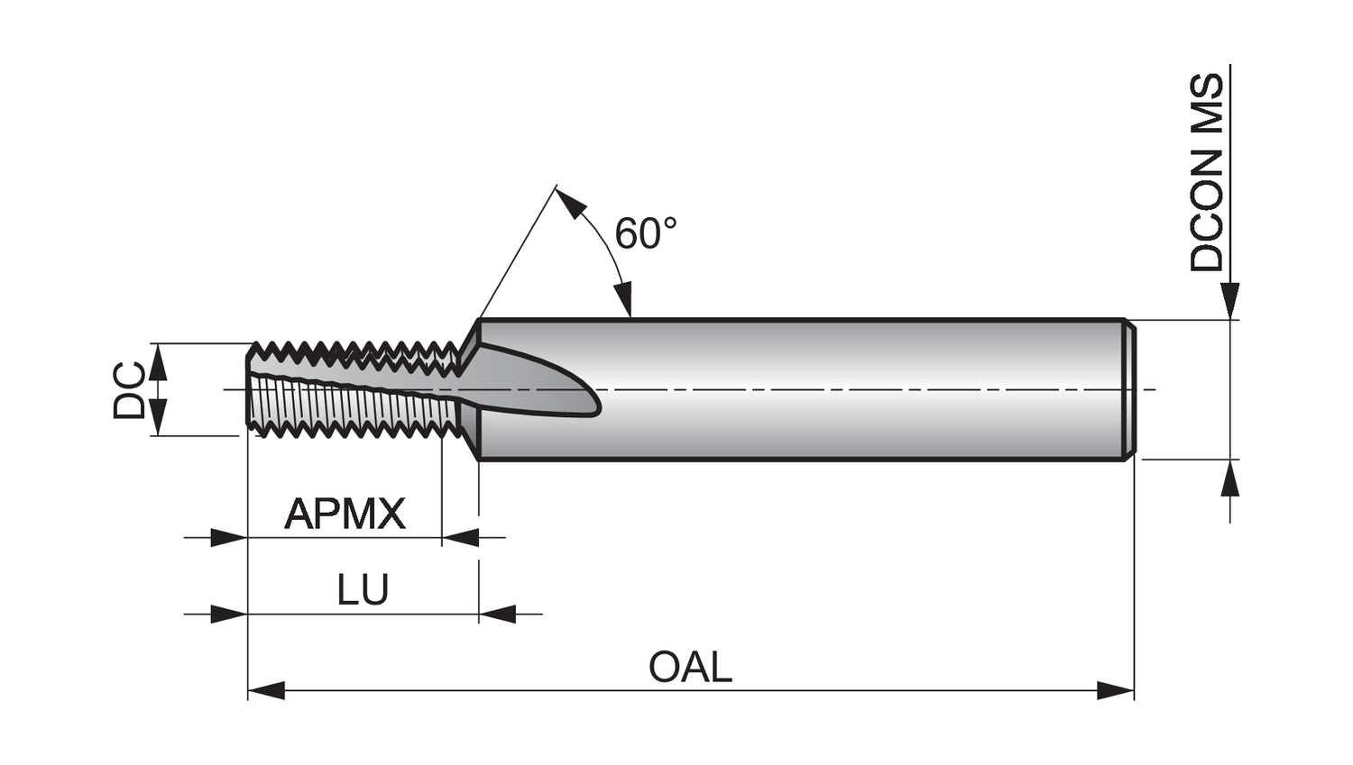 Dormer J2003.2X.7 6821169 Thread Mill Spiral Flute 10° M4 x 0.70 mm