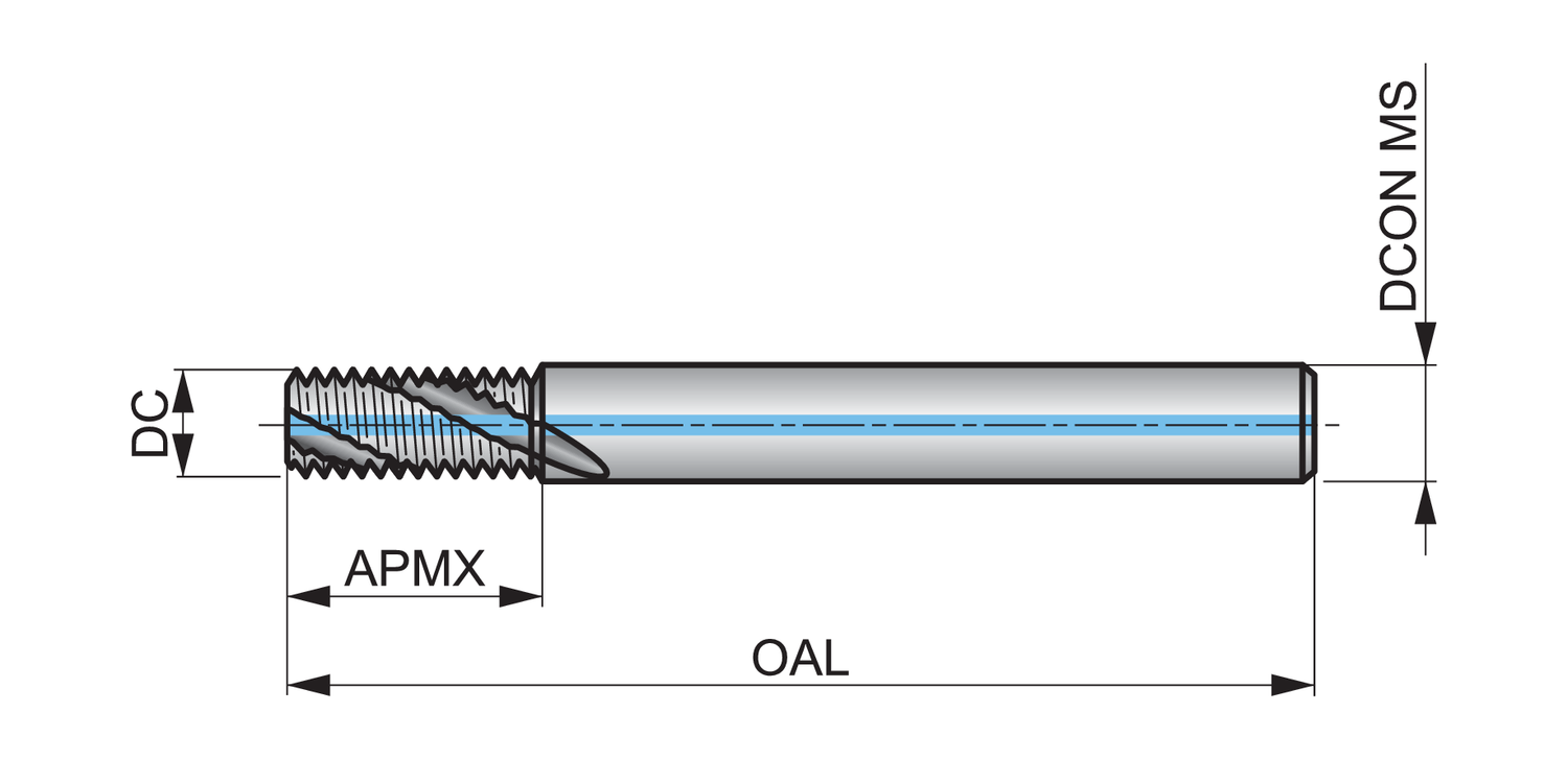 Dormer J2159.5X1.75 6821311 Thread Mill Spiral Flute 27° Oil Feed M12 X 1.75 MM