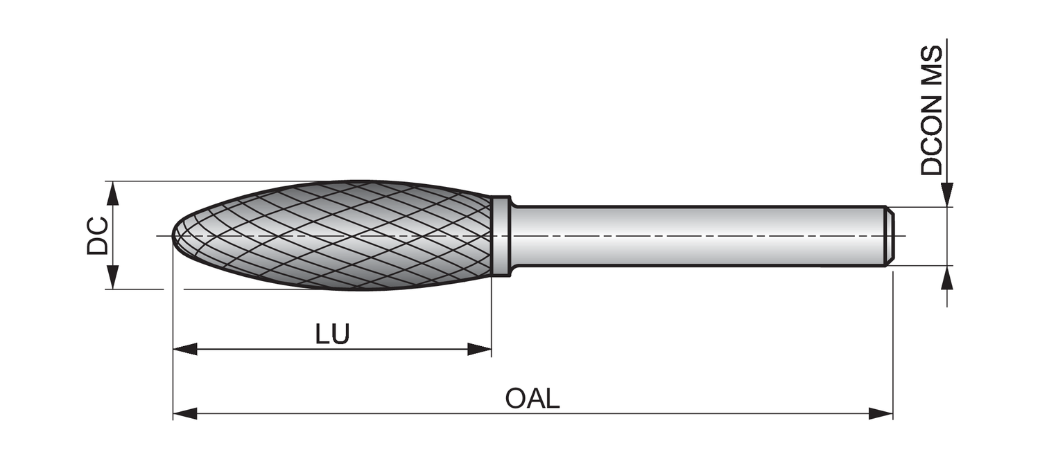 Manufactured from premium carbide material, the burrs provide superior performance and longer tool life at high speeds, whilst the DC geometry breaks chips more effectively to improve control when using by hand.