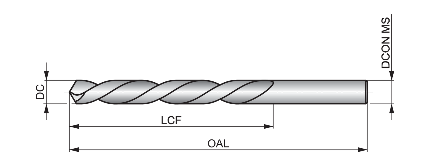 With a left hand spiral flute which can be used in spindles which rotate counter-clockwise, the drills are available in 31 sizes from 1/16” to 1/2" in 1/64” increments.